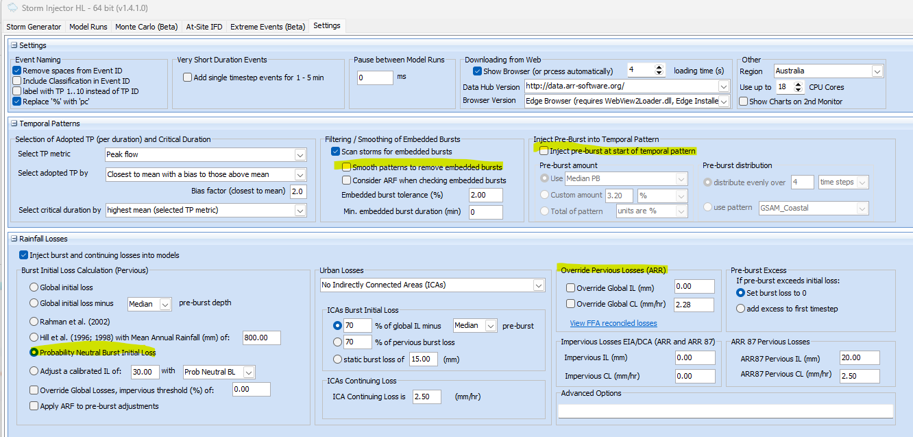 f.Go to the Storm Generator tab and you can see in the Rainfall Depths, that new IFD Locations have been created with the '#A' suffix. This indicates than an ARF has already been applied. Thus, the Apply ARF checkbox should be turned off when using these IFD Locations (Storm Injector should warn you if you forget this).